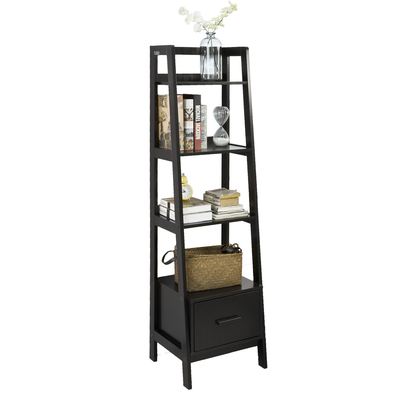 Black Ladder Shelf With Drawers - Black wide leaning ladder bookcase: Posted by bmp-signs Wednesday, January 27, 2021